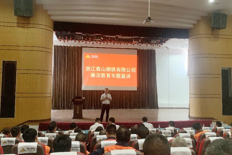 11日下午,在公司开展了廉洁教育专题宣讲活动,公司班组长级以上管理人员及销售、采购、财务等关键岗位人员共312人参会。会上,翁时盼传达了项光达主席对廉洁监察工作的重要指示,通报了青山实业董事局监察安全委员会《关于钟盛江严重违反廉洁规定的处理决定》,提醒各位员工以此为戒,自觉遵纪守法,自觉遵守公司各项规章制度,杜绝以权谋私的腐败行为,自觉秉承“敢为人先、廉洁敬业”的青山精神,做一个风清气正的青山人。翁时盼围绕《预防民企业腐败,铸造廉洁青山》的主题,重点从“为什么要预防民企腐败”“常见罪名”“原因分析”“对策建议”等方面进行了宣讲,并结合他多年来办理的违法违纪典型案例,对非国家工作人员常见职务犯罪类型进行深入剖析讲解,警示和提醒广大职工时刻紧绷廉洁之弦,算清职业账、人身账、经济账、家庭账,正确对待手中权力,做到不敢腐、不能腐、不想腐。吴庆海与杨涛分别就《青山实业廉洁监察条例》与《青山实业举报人保护和奖励条例》出台的背景和总体情况及重点条款进行了详细的解读。陈晨表示,青山钢铁一直重视廉洁工作,廉洁工作是个长抓不懈的工作,一定要在思想上提高认识,坚决抵制各种各样的诱惑,同时要求大家要坚持与身边的不良作风做斗争,勇于发现问题、揭露问题,使公司的廉洁工作更上一个台阶。